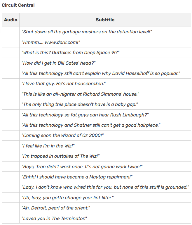Here are some of the quotes that can be heard when playing in this stage, snapped from a fan wiki of the games.